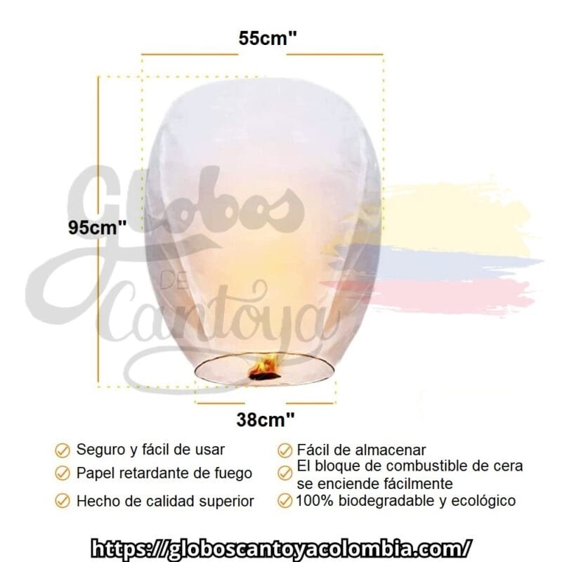 Nuestros globos de cantoya son elaborados con materiales biodegradables y amigables con el medio ambiente, no flameables y caen apagados.